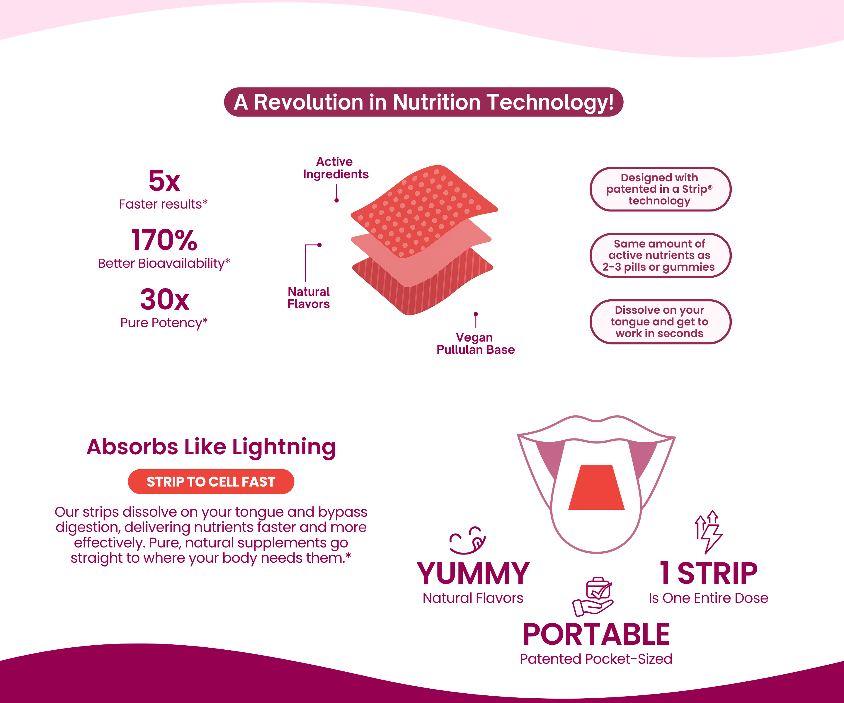 You’ll feel the effects of Pure Energy Strips within minutes. The fast-dissolving strips quickly release energy and mental clarity, making them ideal for a quick energy boost during busy moments.*