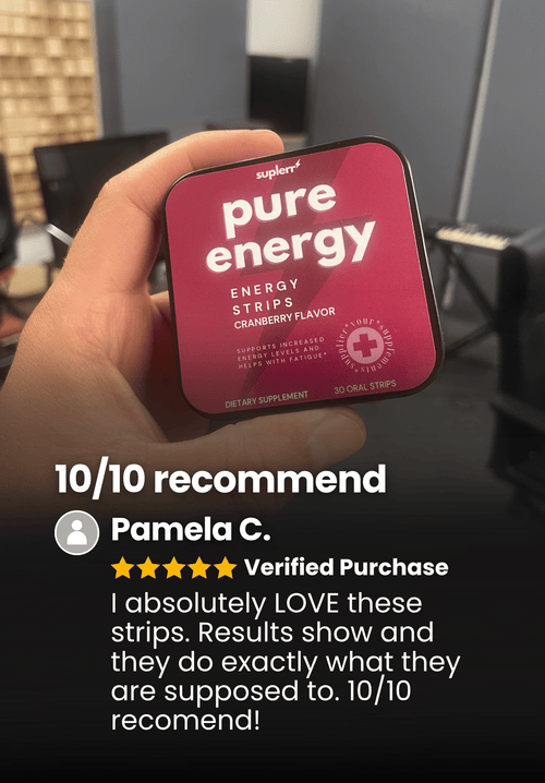 Pure Energy Strips are a convenient, fast-dissolving supplement that provides an instant boost of sustained energy, mental clarity, and focus. These strips are portable, sugar-free, and designed for on-the-go use.*